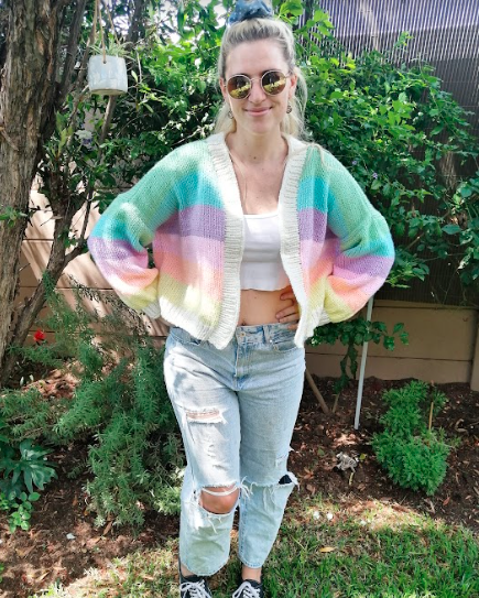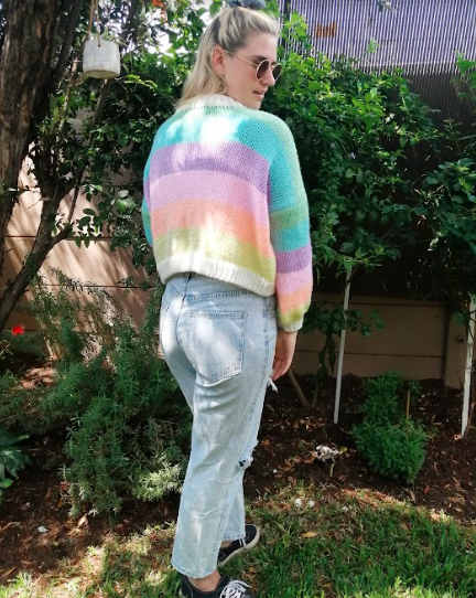 This cardigan looks like floating on a cloud. A classic colour palette, perfect for those who are whimsical. This pastel rainbow was so fun knit – I just love these colours.